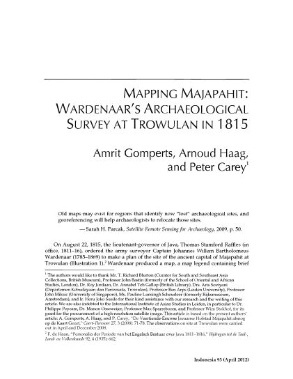 Artikel ini menyajikan penelitian mengenai lokasi kota Trowulan sebagai Ibukota Majapahit dan keberadaan keratonnya. Terdapat ulasan kajian-kaijain terdahulu mengenai penelitian rekonstruktif ibukota Majapahit. Penelitan ini menampilkan georeferensi terhadap detail dari Peta karya Maclaine Pont dan Kromo Adi Negoro (1924 dan 1926), Peta Ekskavasi oleh Vistarini (1931), Peta tumpang susun Stutterheim (1948) terhadap peta dari Vistarini (1931), serta Peta Wardenaar (1815).
